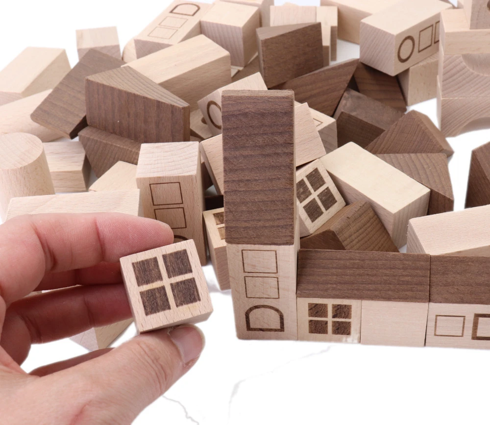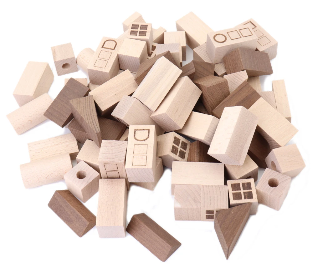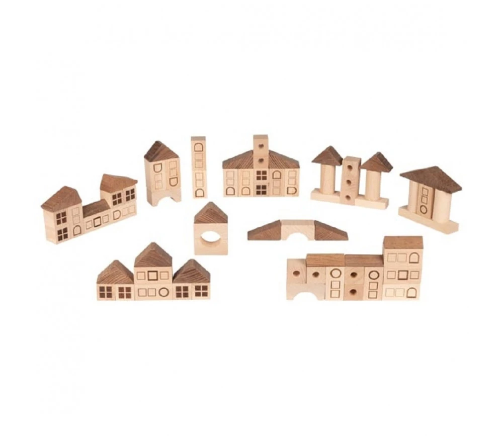 Blocs de construction bois naturel : thème ville.