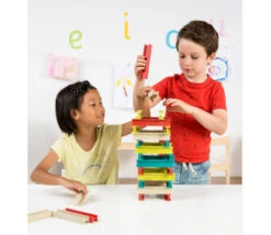 32 poutres emboitables pour réaliser des constructions en suivant le guide d’activités ou en laissant l’imagination guider les enfants.