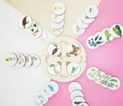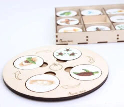 Jeu d’apprentissage, découverte du monde et de la nature à travers les cycles de vie du monde animal et végétal.