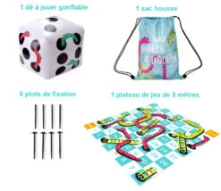 Composition de ce jeu géant des serpents et échelles. Jeu de société XXL