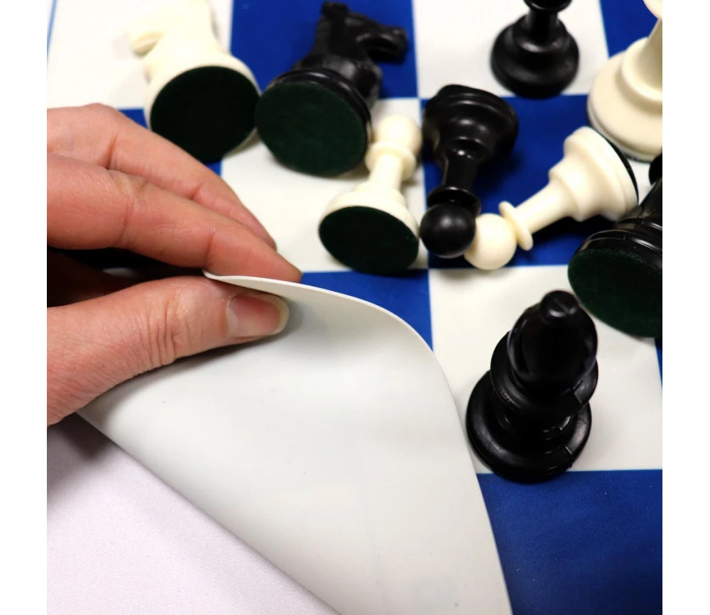 - Plateau de jeu souple en silicone de belle qualité qui s’enroule et se déroule facilement (stable pour le jeu et facile à ranger). Dimensions 50 cm. Cases de l’échiquier de 5.5 cm.