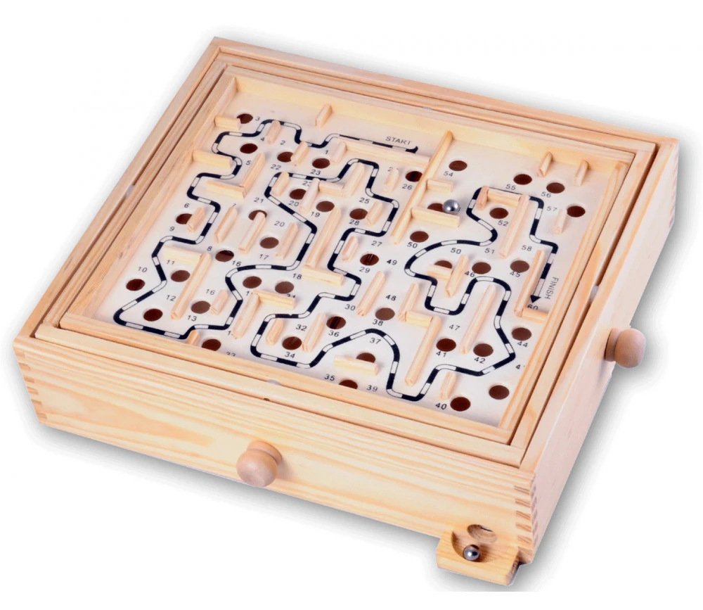 Jeu de labyrinthe en bois pour tester votre adresse. Un excellent jeu en bois pour s’amuser seul ou en challenge avec des amis.