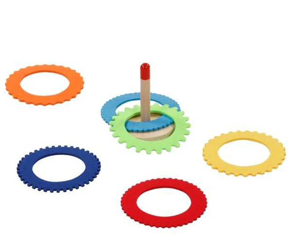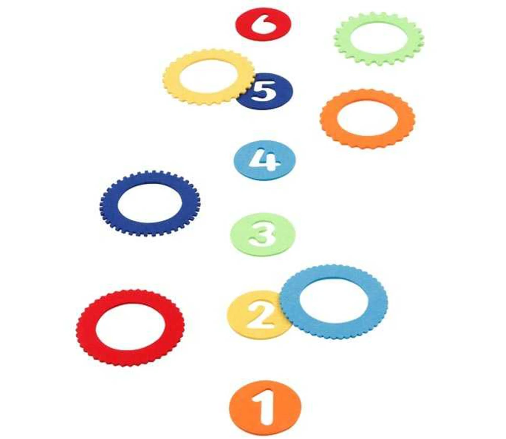 - 6 grands anneaux crantés de 16 cm de diamètre en feutrine (crantage et couleurs différentes)