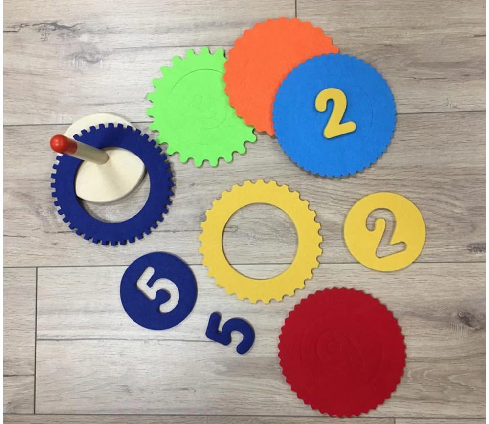 Outil pédagogique de motricité et de découverte des chiffres et des quantités.