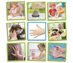 Jeu de découverte des 5 sens avec fiches illustrées et dé géant. Jouez à associer les 5 sens aux situations de la vie au quotidien.