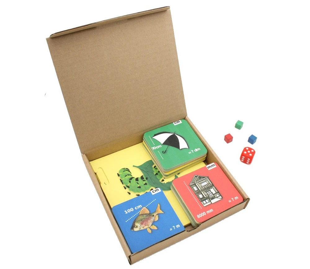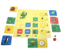 Jeu de math pour apprendre à convertir les unités de mesure de longueur : mètre, centimètre, décimètre et millimètre. Matériel éducatif pour jouer en apprenant.