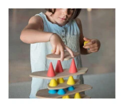 Jeu éducatif ouvert pour les enfants de 3 à 12 ans avec cônes colorés en silicone non toxique et planches de bois de hêtre.