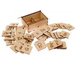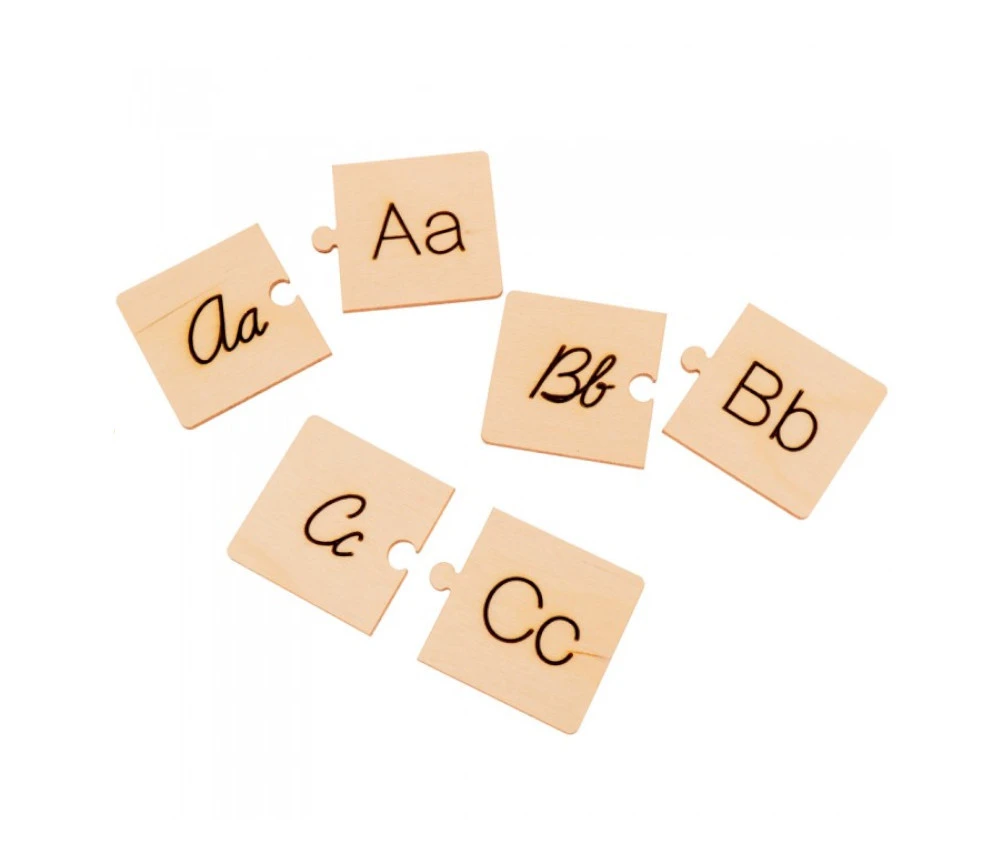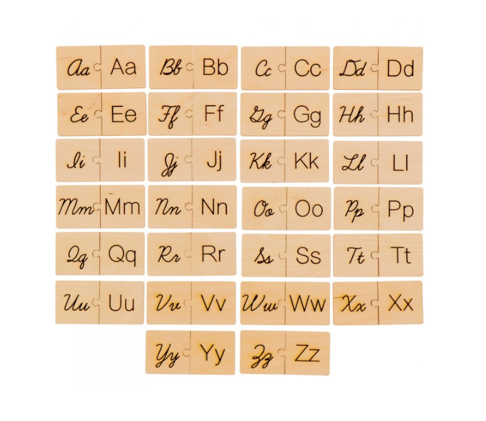 Jeu d’association puzzles des lettres cursives et scriptes en bois :