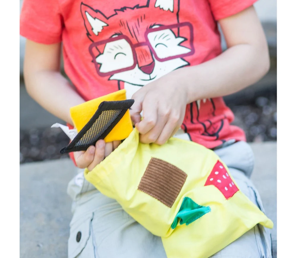 Support de jeu pour jouer sur le sens du toucher, apprendre à découvrir, reconnaître, travailler avec ses mains, décrire les sensations et essayer de retrouver les textures ou formes identiques.