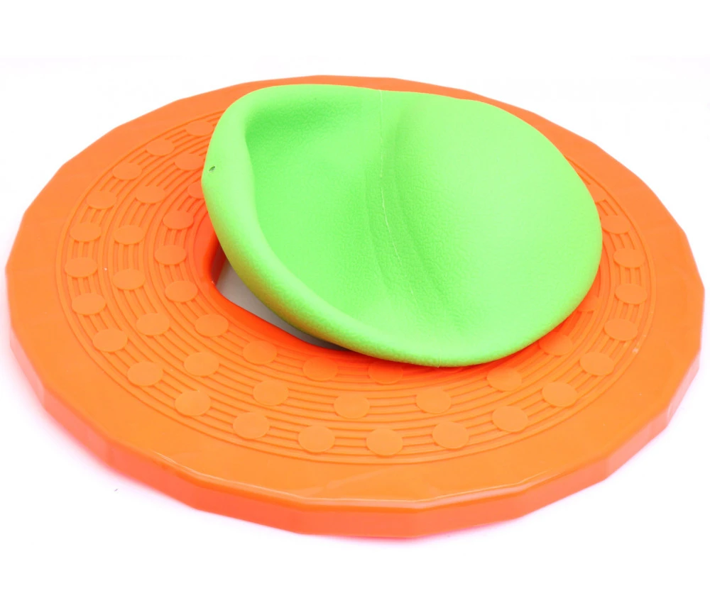 Ballon sauteur de 45 cm de diamètre avec plateforme d’appui pour les pieds.