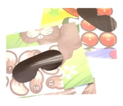 - 1 jeu de lapin (poster de lapin + 14 queues séparées) + 1 bandeau carton 15.8 x 7 cm