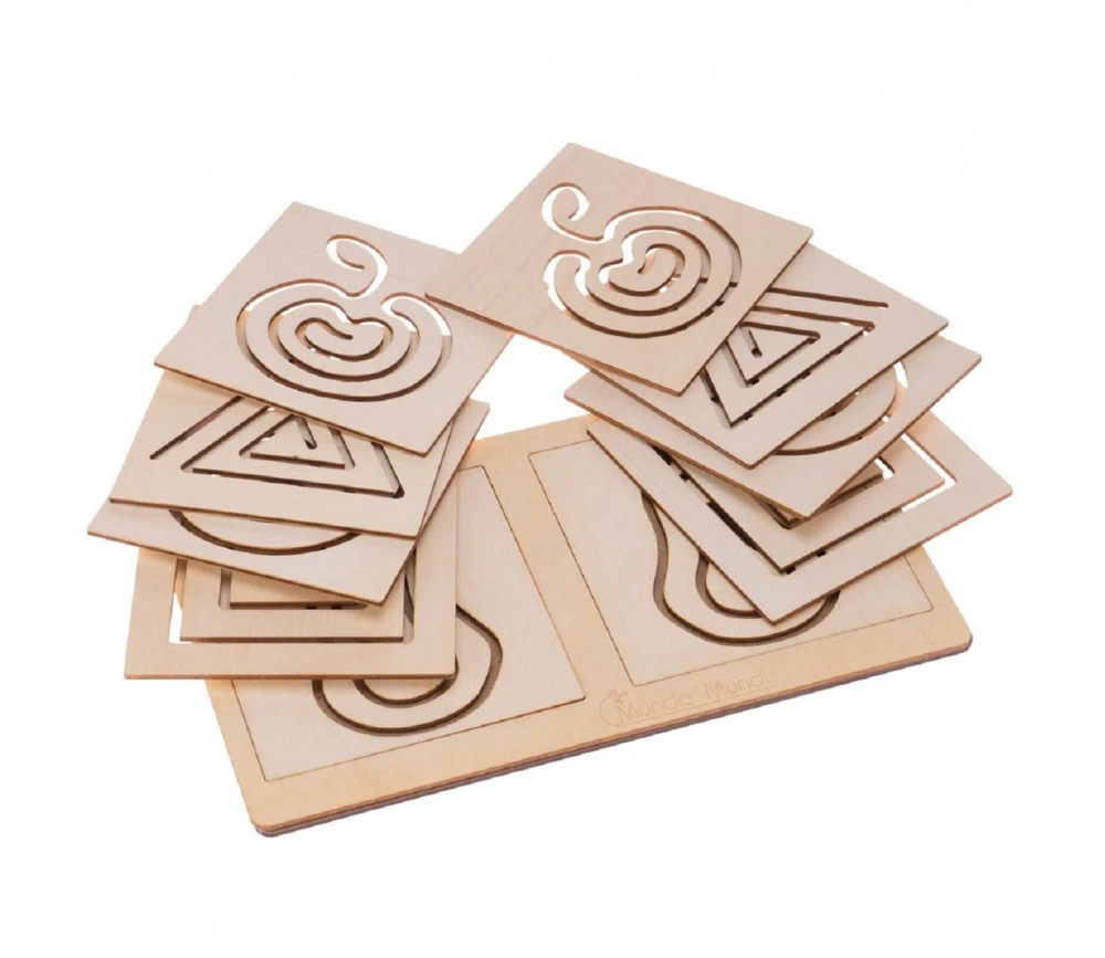Dessiner à 2 mains avec ce set de grandes plaquettes tableau en bois représentants un motif à reproduire avec la main droite et la main gauche.