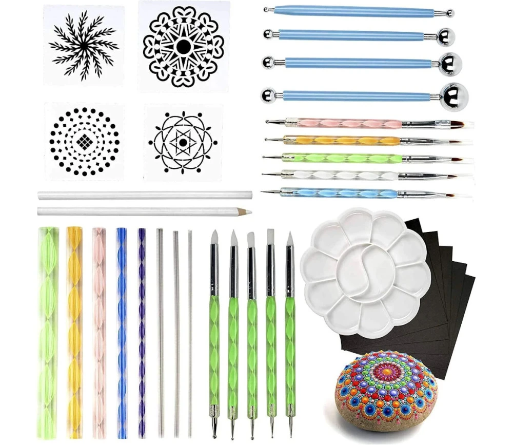 Le KIT décorations Mandala outils de peinture comprend 35 pièces pour création :