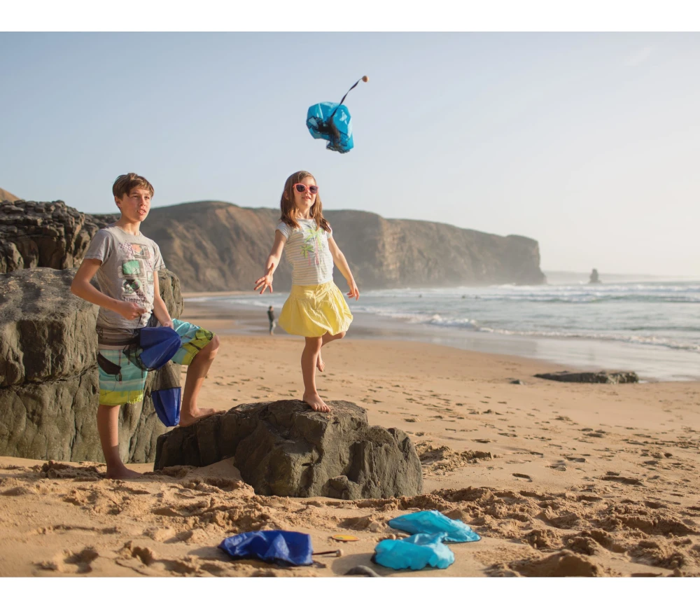Jeu composé de 6 boules parachutes, une île flottante, et une ficelle pour aider à départager les plus proches de l’île,