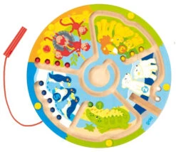 Jeu de labyrinthe en bois magnétique. Un excellent jeu d’apprentissage : apprendre à tenir un crayon, à contrôler le mouvement, à suivre une trajectoire, travailler la coordination.