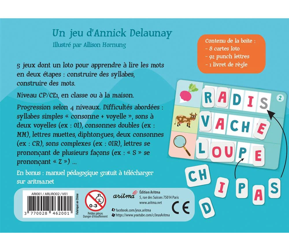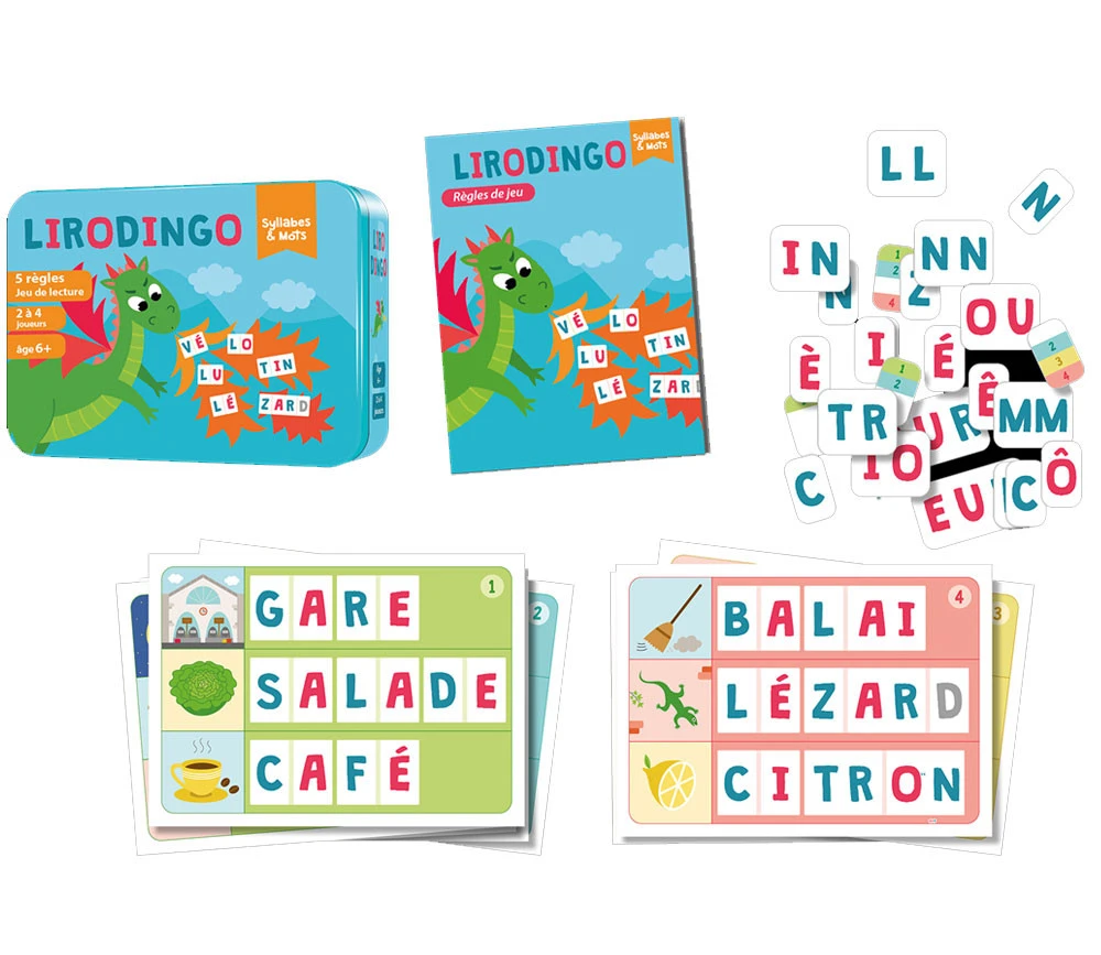 Ce jeu Lirodingo Syllabes et mots comprend :