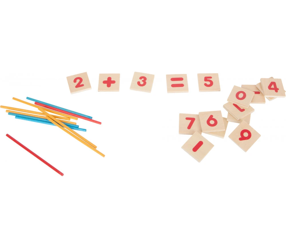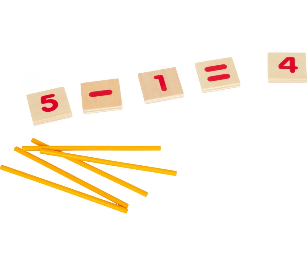 Matériel Mathématiques en bois addition et soustraction et comparaison comprenant :