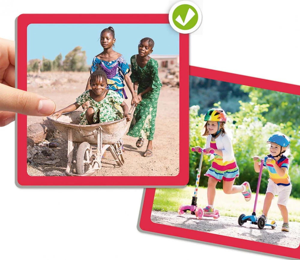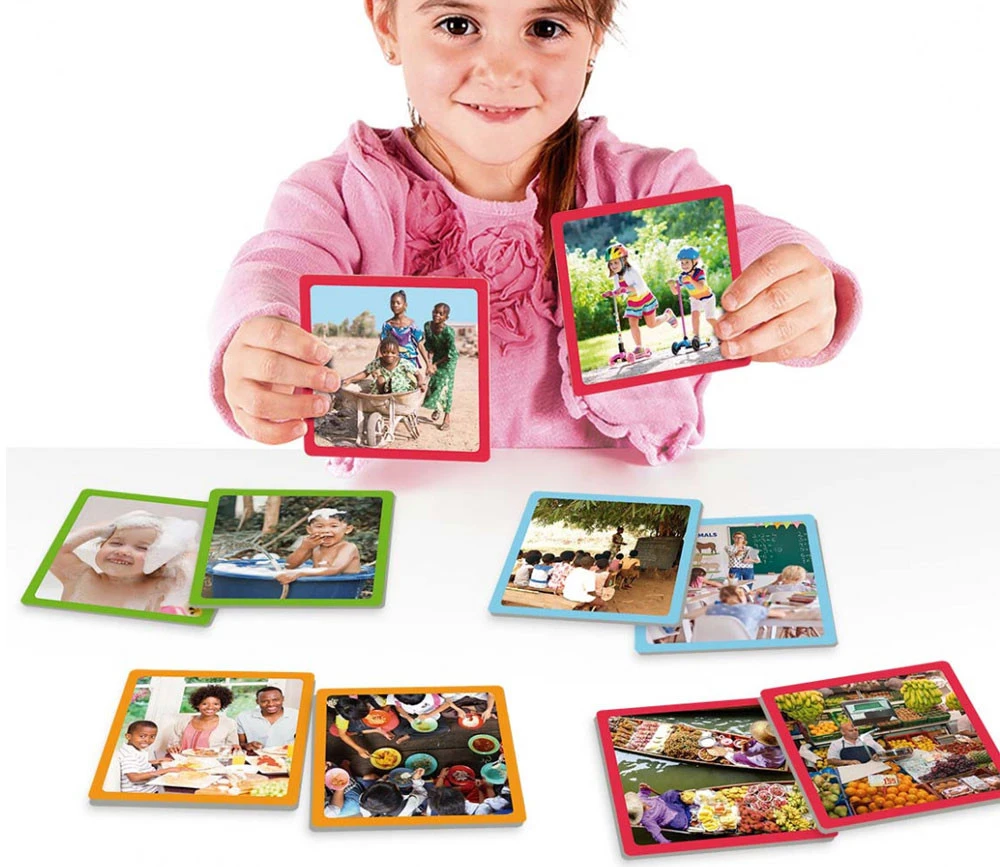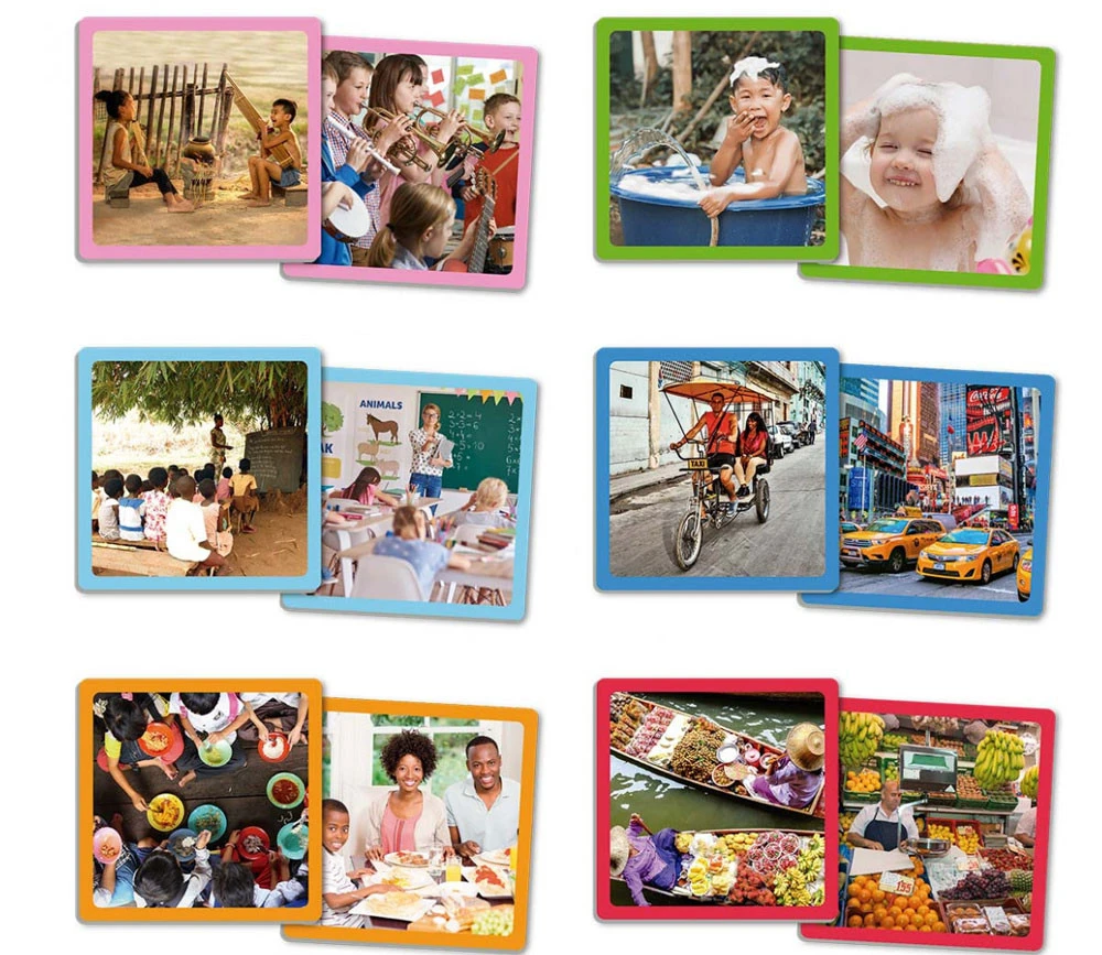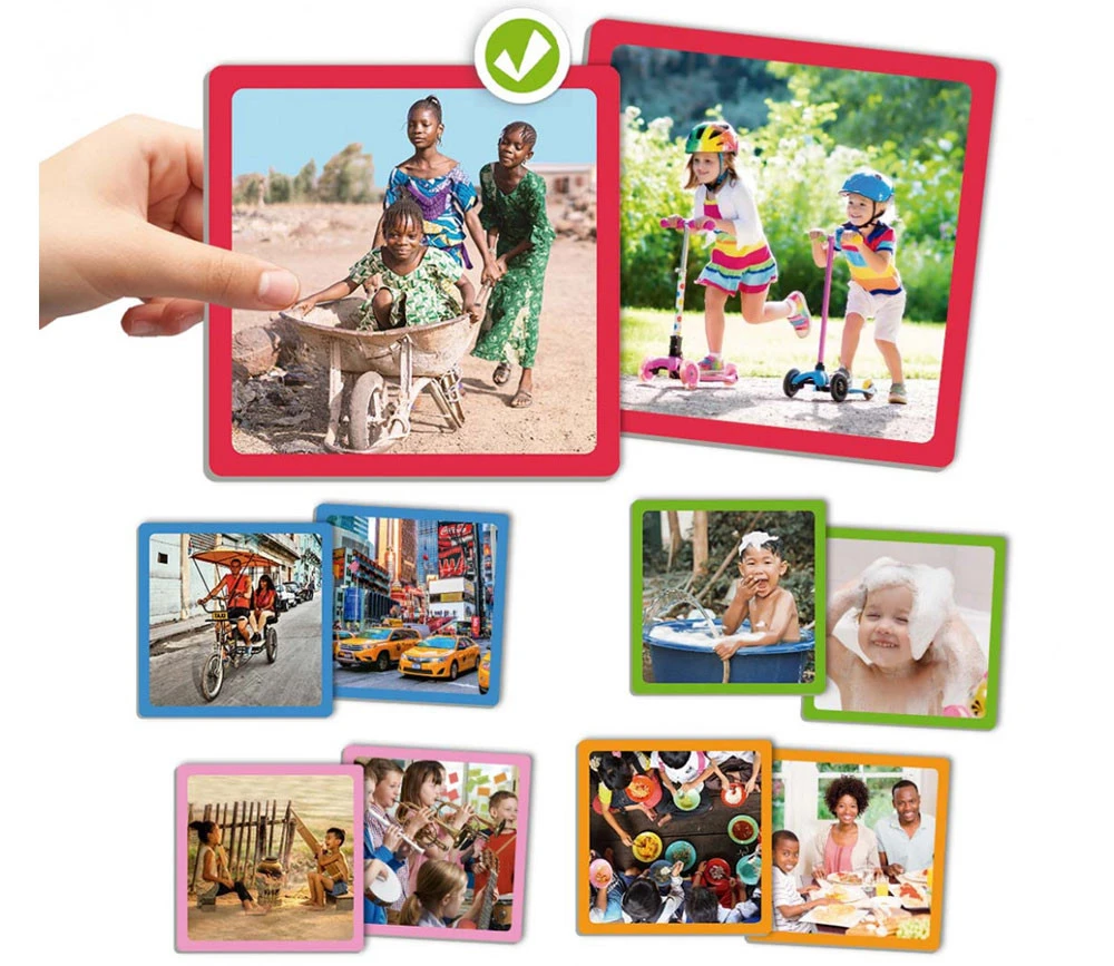 Jeu mémo découverte du monde et des différentes manières de vivre pour les enfants à travers la planète. Jeu éducatif respect et inclusion.