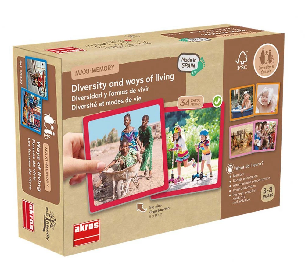 Jeu diversité et modes de vie : 34 cartes en carton épais, dimensions 9 x 9 cm avec une mallette de rangement