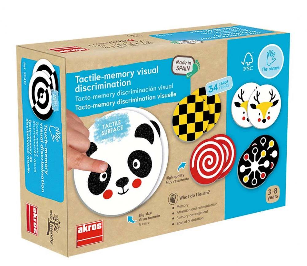 34 cartes de 9 x 9 cm illustrées avec des images contrastées associées au toucher. Inspiré de la méthodologie Montessori, ce jeu apporte une variante tactile au mémory classique en complément de la mémoire visuelle.