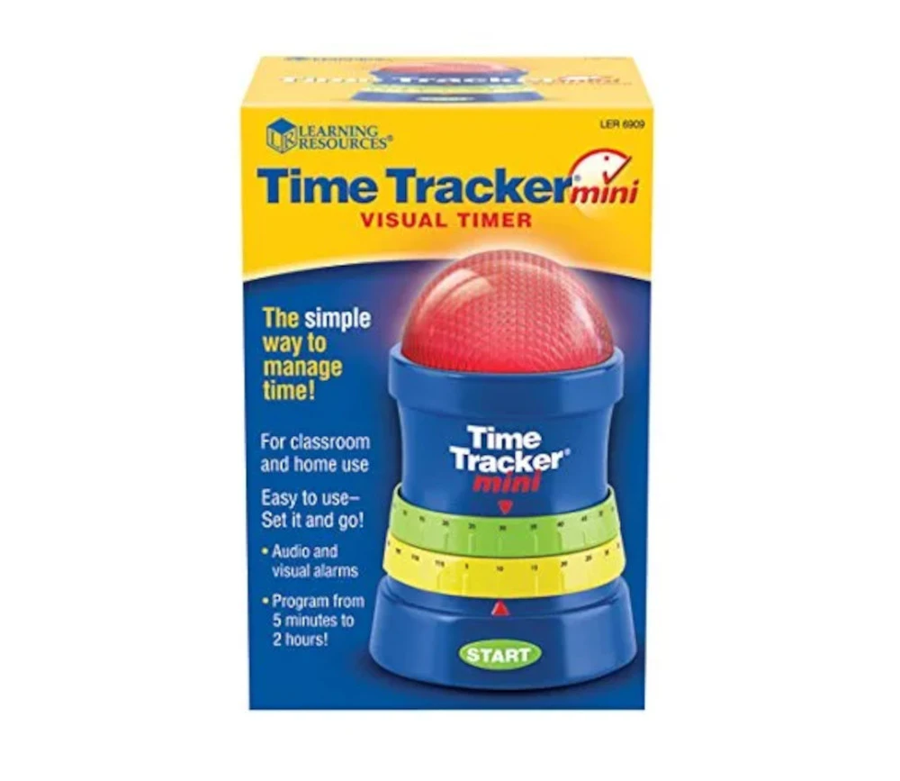Mini minuteur Time Tracker de Learning Resources. Ce mini minuteur est idéal pour différentes activités. Les indications lumineuses et sonores permettent aux enfants de comprendre le principe du temps qui passe en visualisant le temps restant, parfait pour développer les aptitudes de gestion du temps. Simple à utiliser, il suffit de tourner les deux cadrans pour sélectionner le temps total et l’alarme qui se déclenchera avec une lumière et un son. Le minuteur Time Tracker peut décompter jusqu’à deux heures par intervalles de cinq minutes. Unité compacte avec affichage à 360° pour une utilisation facile sur la table. Mesure 12 cm de long. Fonctionne avec 3 piles AAA (non fournies). À partir de 3 ans.