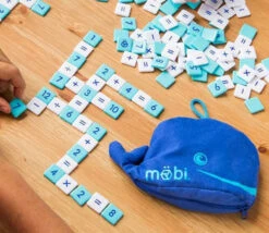 Jeu de maths ludique pour utiliser en famille (à la maison ou en voyage grâce à sa superbe petite trousse baleine) ou en classe à l’école.