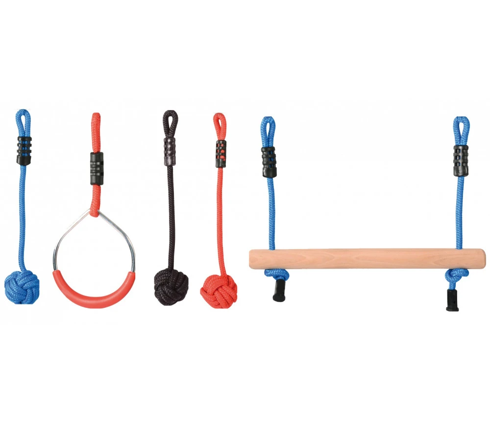Jeu de parcours dans les arbres avec accessoires. Facile à fixer.