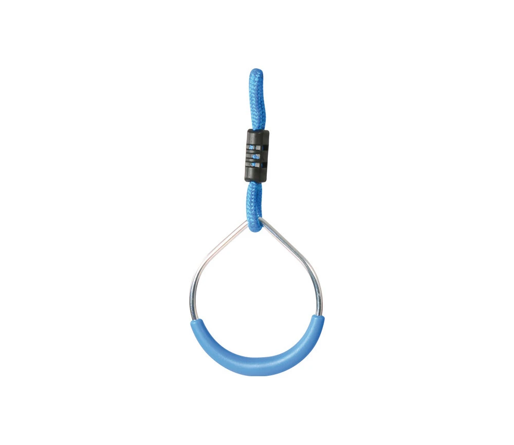 - 2 anneaux de 15.5 cm x 13.5 cm (1 rouge et 1 bleu), 30 cm hauteur. Matériau corde et métal
