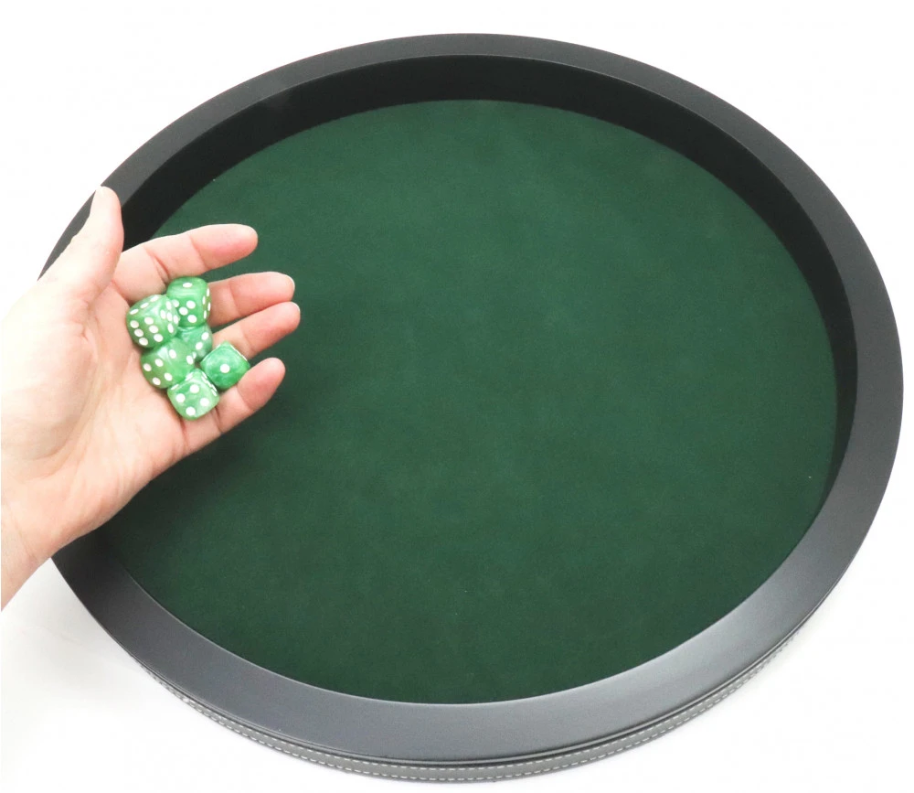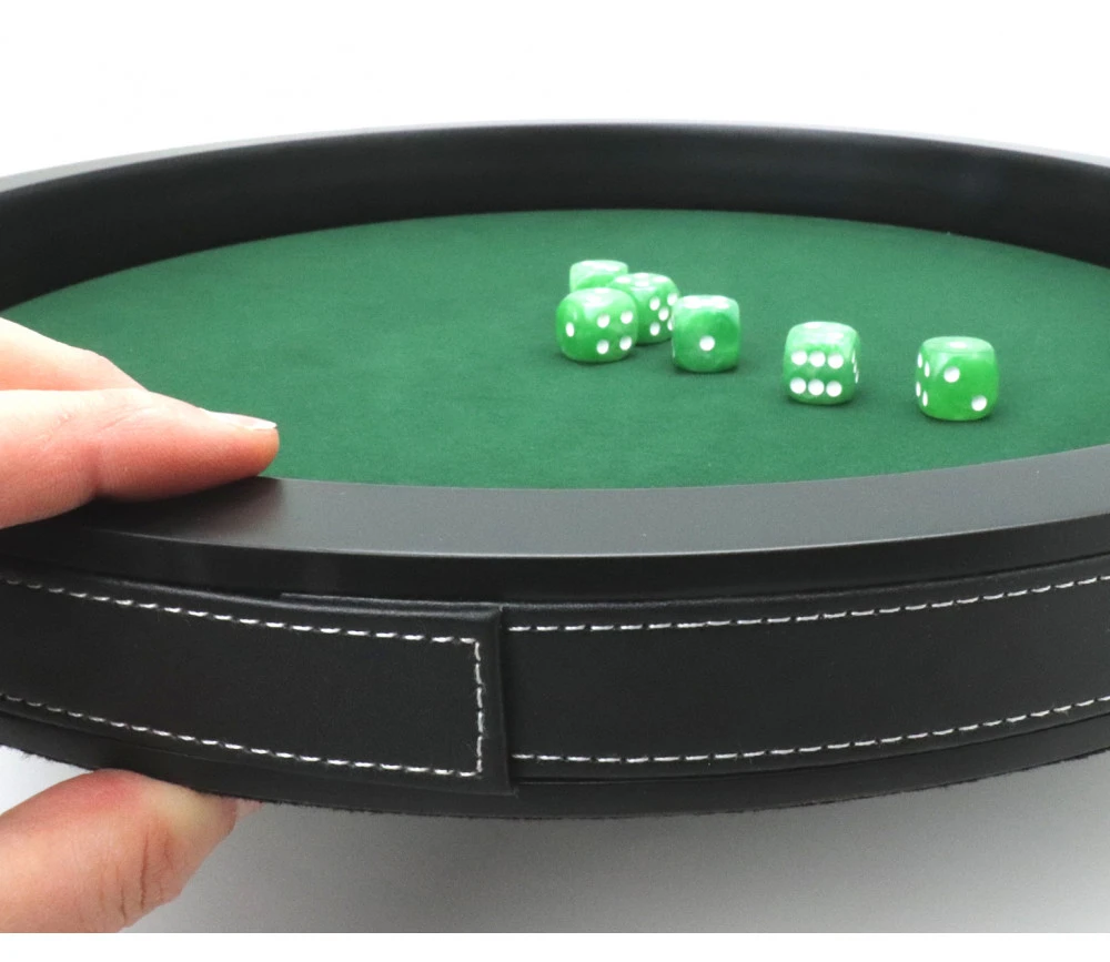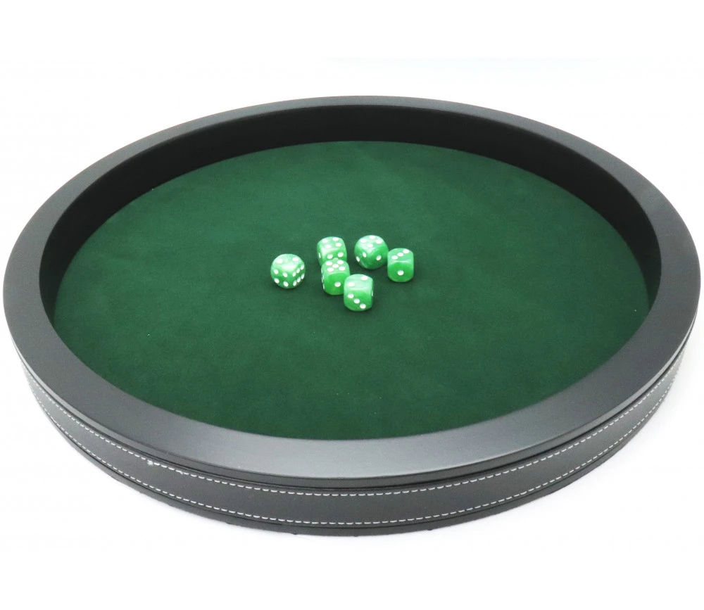 Tout pour le Jeu vous propose cette super belle piste verte et noire très classe. Piste de dés idéale pour un cadeau. Piste de jeu de 40 cm livrée avec des dés à jouer.