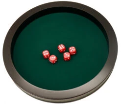 Tout pour le Jeu vous propose cette super belle piste grande de jeux. Couleur vert et noir très classe. Piste de dés idéale pour un cadeau. Piste de jeu de 43 cm livrée avec 5 dés à jouer.