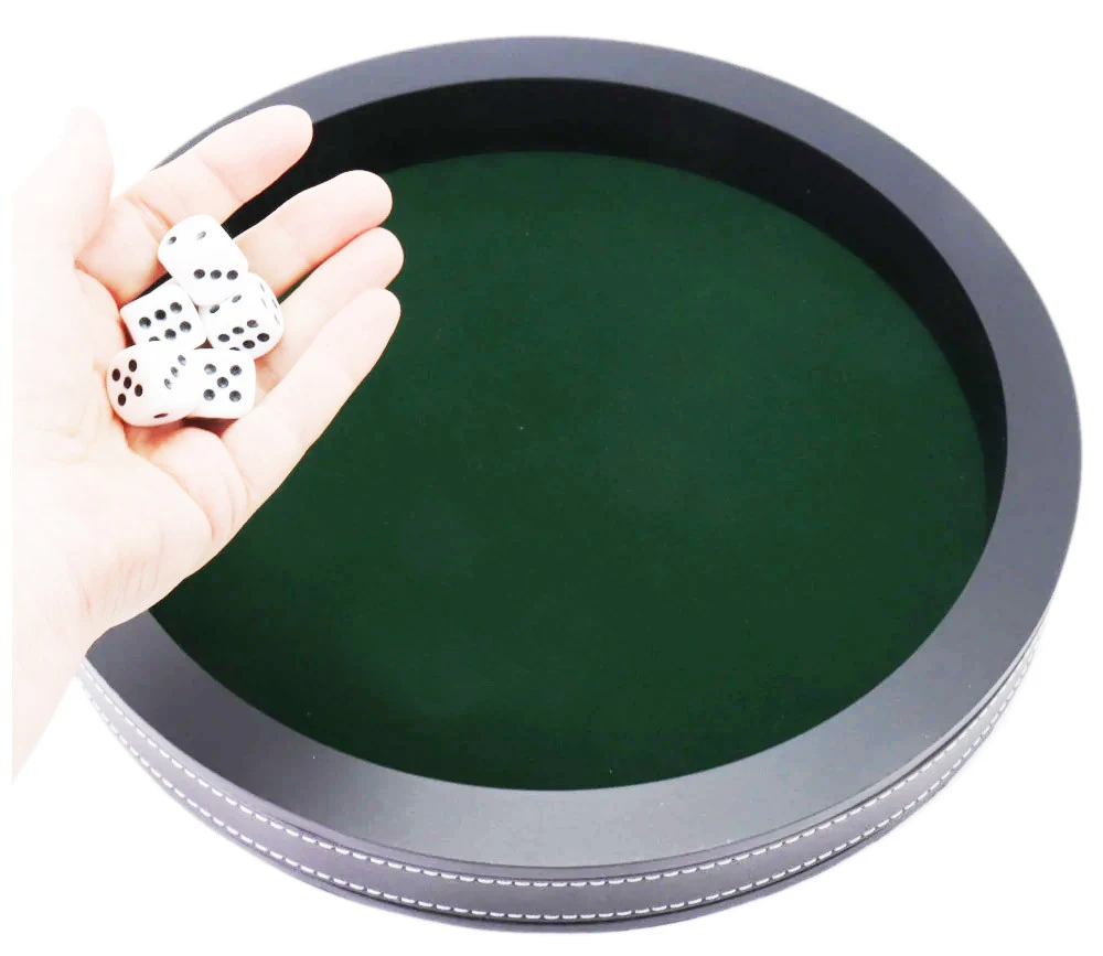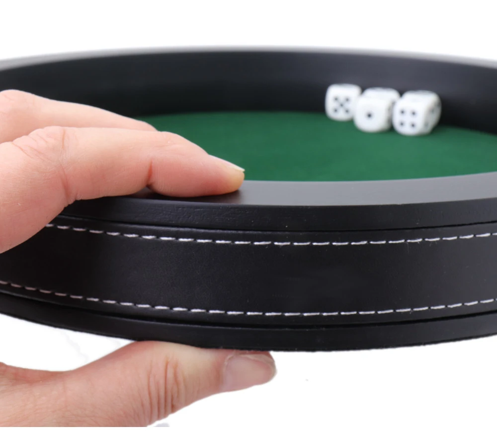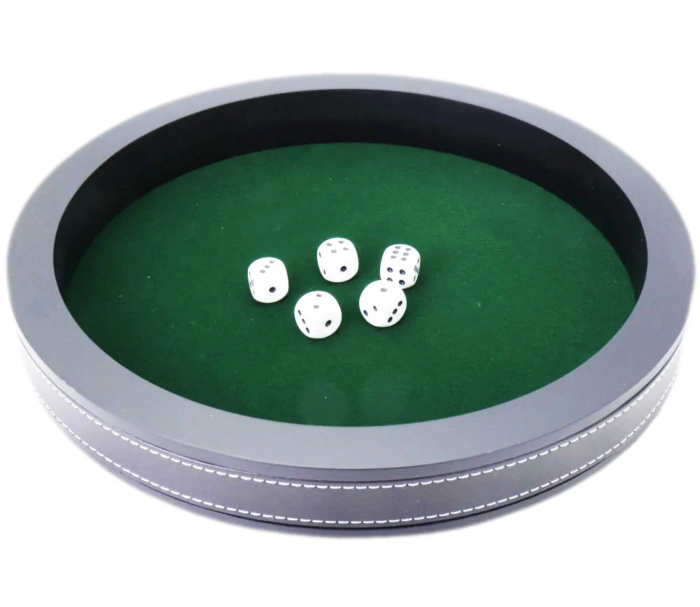Tout pour le Jeu vous propose cette super belle piste verte et noire très classe. Piste de dés idéale pour un cadeau. Piste de jeu de 30 cm livrée avec 5 dés à jouer.