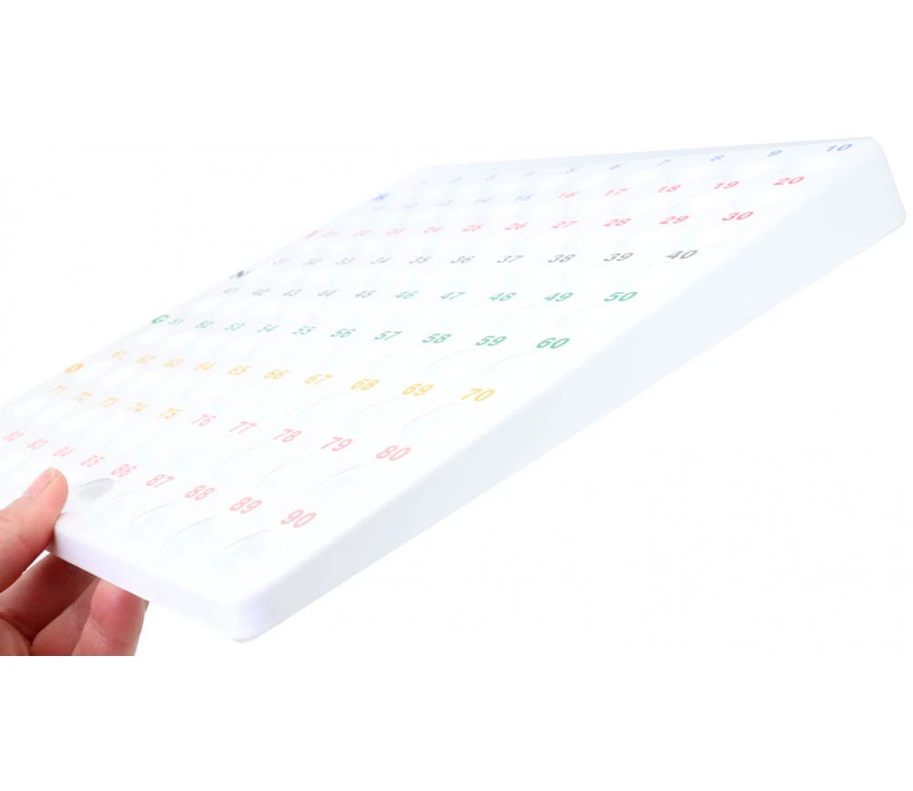 Plateau en plastique blanc avec les numéros colorés en haut de chaque creux pour un repérage facile des emplacements.