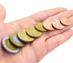 Pièces en Re-plastique et billets en papier imitation euros pour jeux. Idéal pour jouer au jeu de la marchande ou à des jeux de société avec de l’argent. Des pièces en jouets pas chers très ressemblants pour vos exercices en classe avec les enfants. Accessoire de jeu pour jouer à la marchande, utiliser comme monnaie dans vos jeux ou apprendre les bases de calcul…