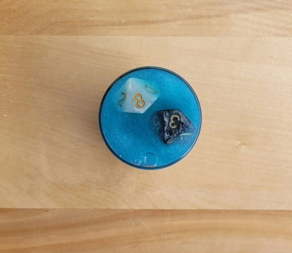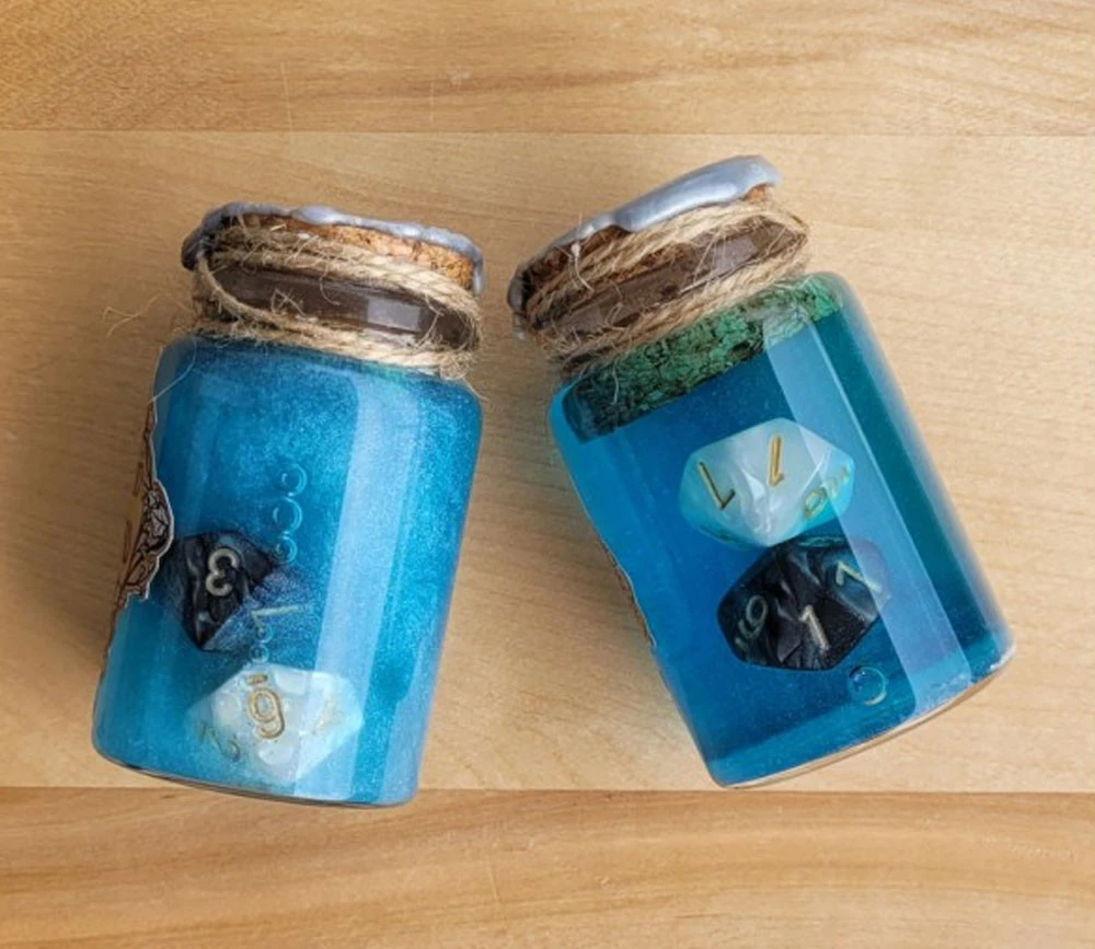 Des potions et des dés. Une potion avec 2 dés 10 faces. Un dé mystique qui faut aussi décoration d’intérieur. Surprenez avec ces petites fioles magiques comprenant 2 dés 10 faces qui apparaissent lorsqu’on la secoue.