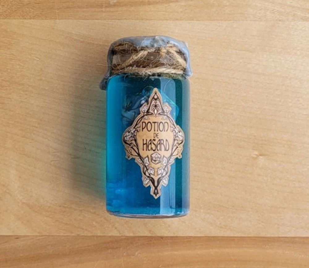 Des potions et des dés. Un dé mystique qui faut aussi décoration d’intérieur. Surprenez avec ces petites fioles magiques comprenant 1 dé 20 faces qui apparât lorsqu’on la secoue.