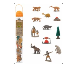 Tube de figurines en plastique Préhistoire pour découverte des enfants comprenant :