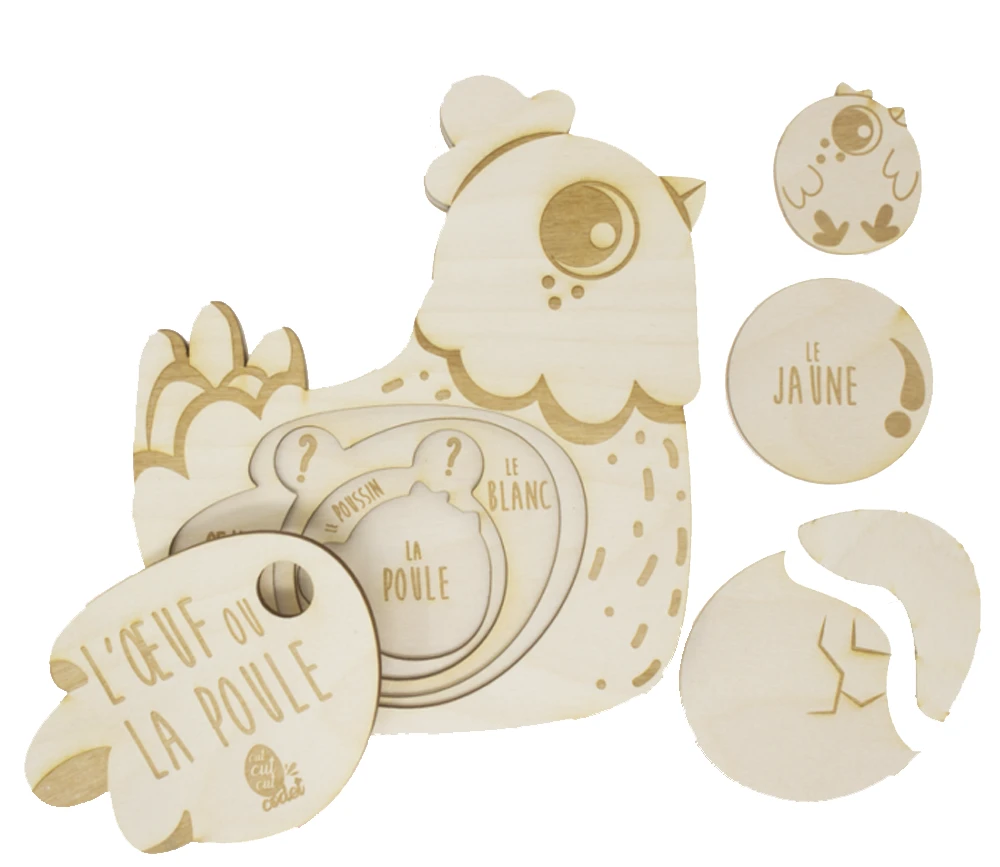 Jeu éducatif sur la connaissance des animaux avec des pièces descriptives sur l’évolution de la poule.