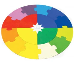 Au centre la pièces en forme d’étoile représente le soleil, autour les 4 grandes pièces représentent les 4 saisons et autour les 12 petites pièces représentent les mois de l’année. Si vous souhaitez créer le cycle de l’année, les couleurs sont les suivantes : bleu pour l’hiver, vert pour le printemps, jaune pour l’été et rouge pour l’automne.