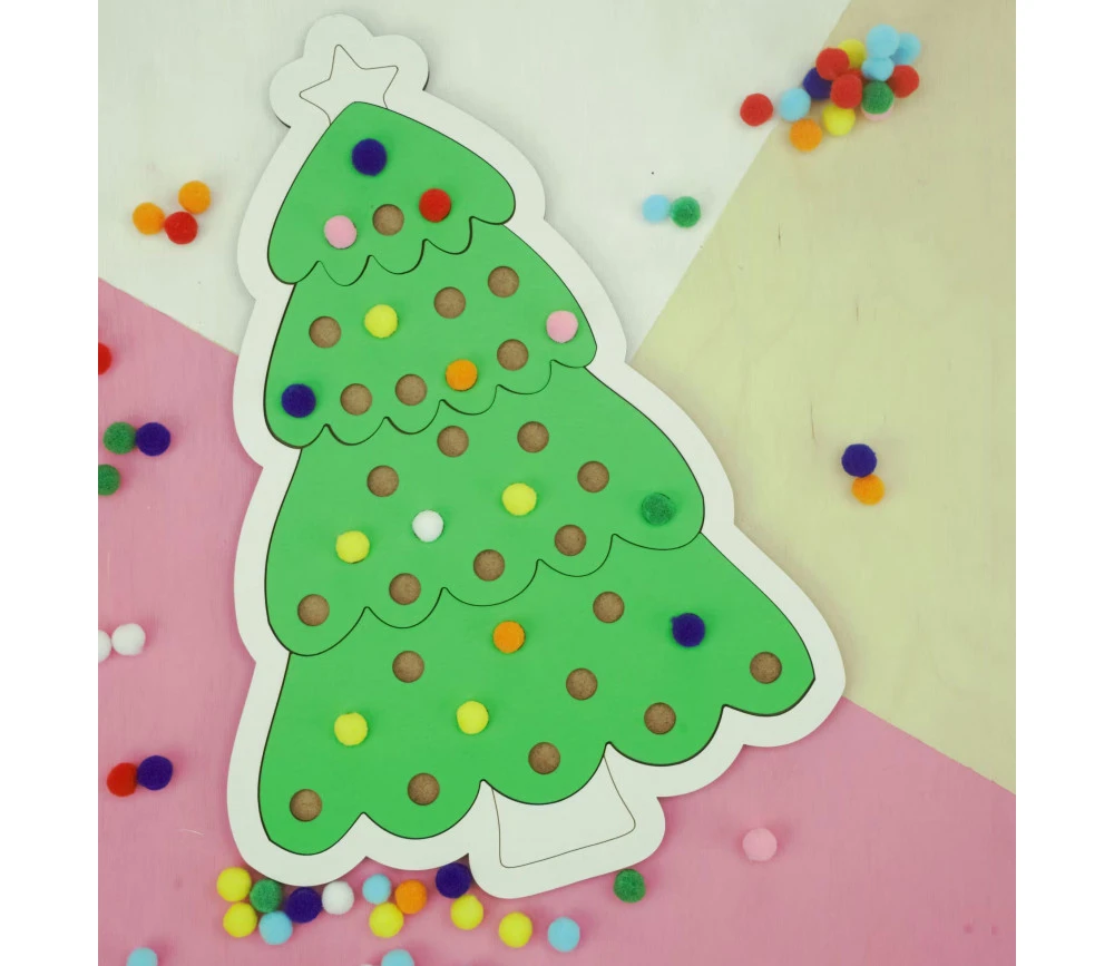 Jeu puzzle sapin avec pompons.
