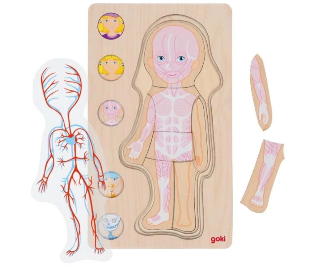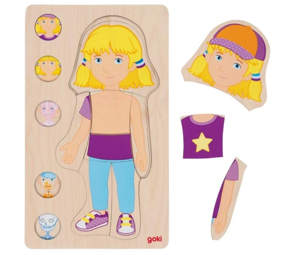 Puzzle fille en bois en 5 étapes pour découvrir et mieux comprendre le corps humain pour les enfants.