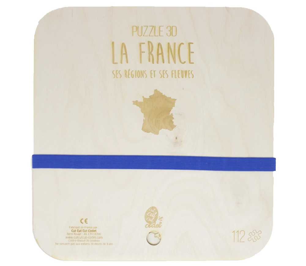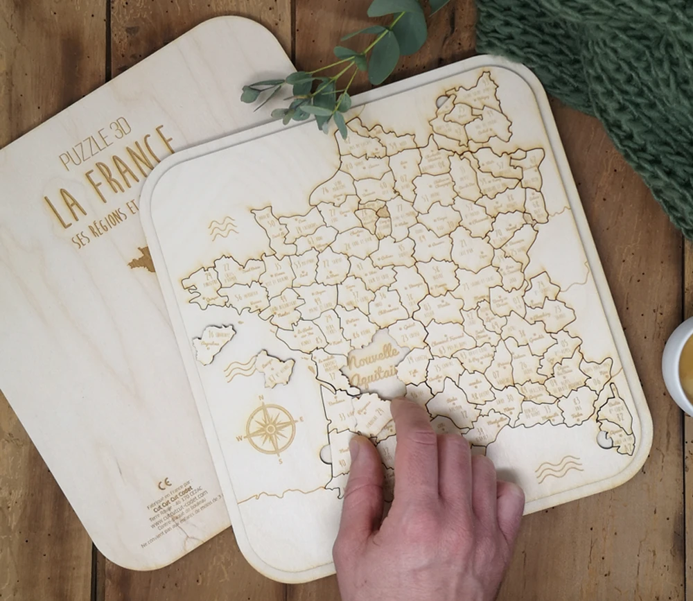 Puzzle France éducatif enfant sur la connaissance de la géographie avec pièces descriptives.