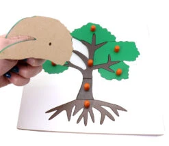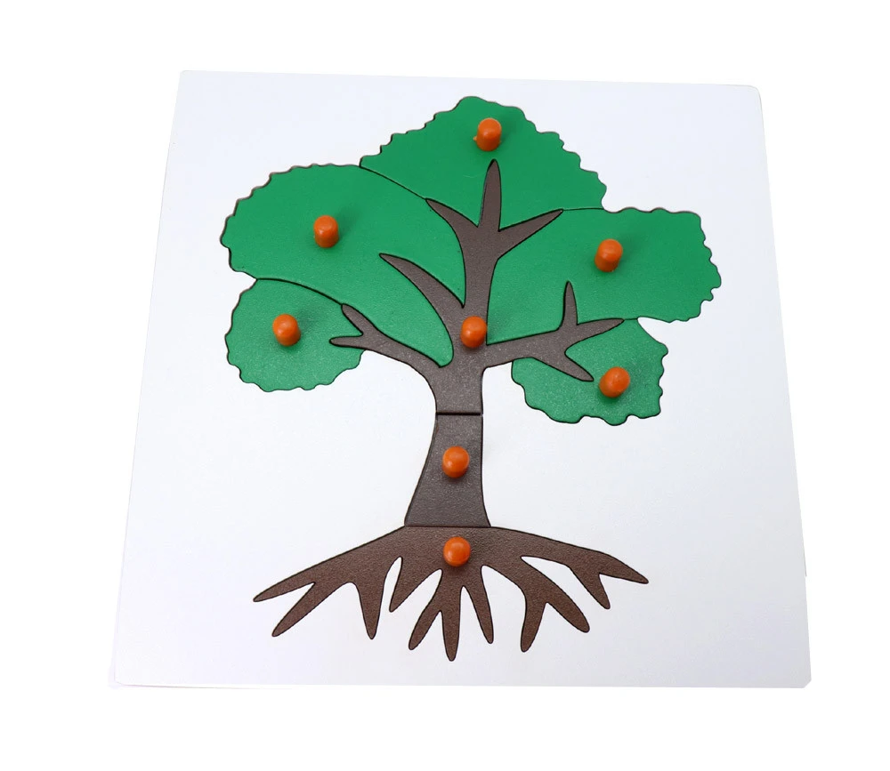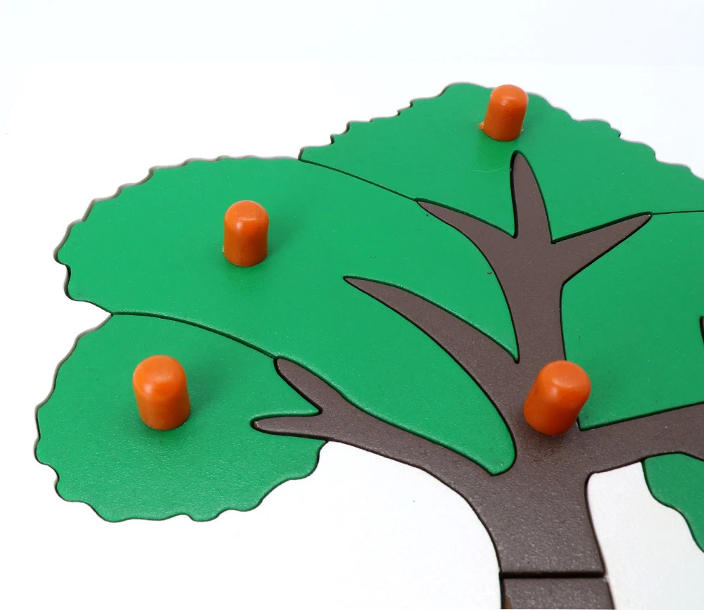 Jeu de motricité et de réflexion de la méthodologie Montessori pour l’apprentissage du monde et de la coordination vision/mains. Les tout-petits vont adorer mettre en place les pièces et assembler ce joli arbre.