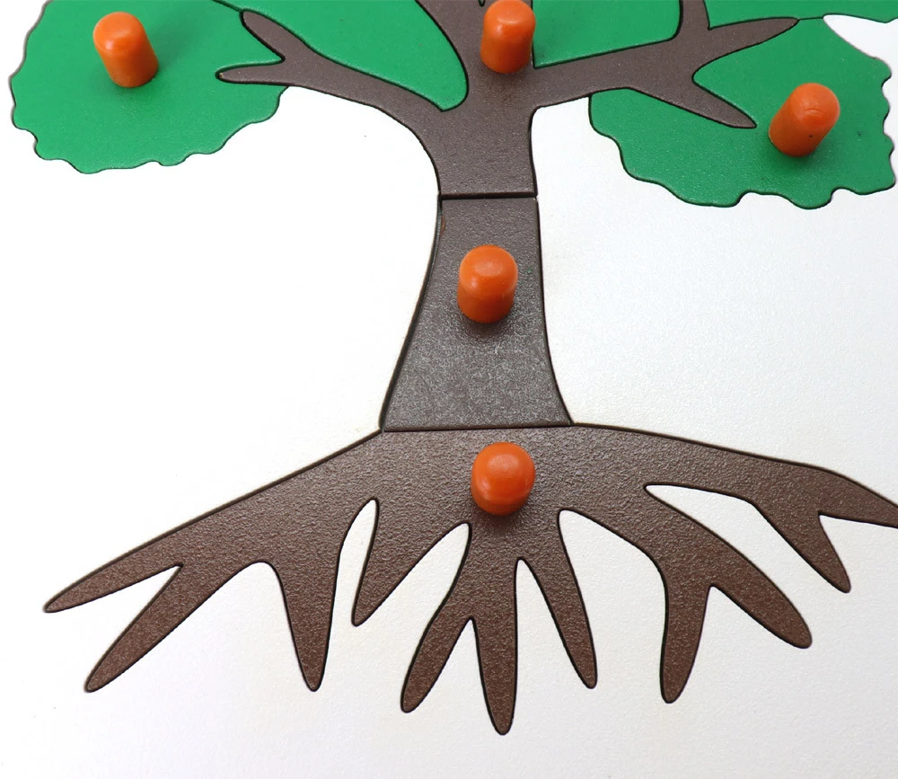 Agréable au toucher, avec de belles couleurs, l’enfant a envie de manipuler les pièces pour assembler l’arbre.