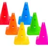 7 pièces en bois colorées avec boutons de préhension.
