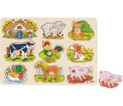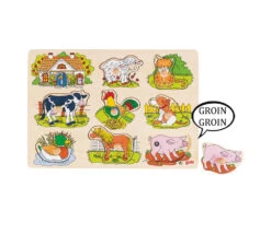 Puzzle en bois musical animaux de la ferme Goki comprenant :