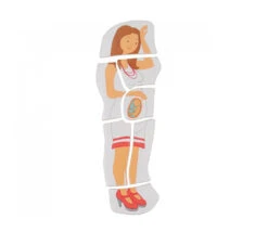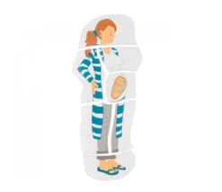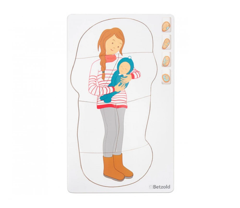 Outil pédagogique avec 27 pièces à superposer qui décrivent la croissance du bébé, de l’embryon au terme de la grossesse et le volume que cela représente dans le ventre de la maman.