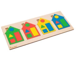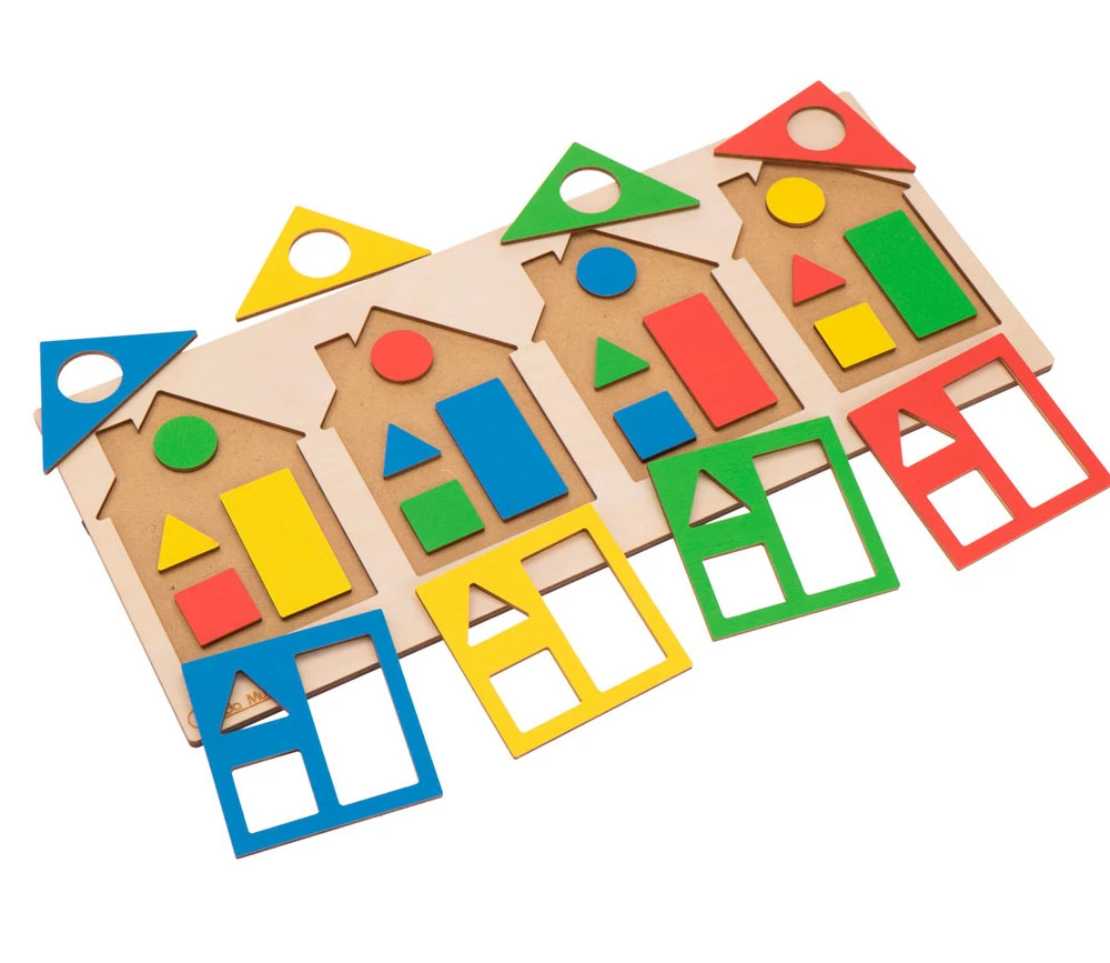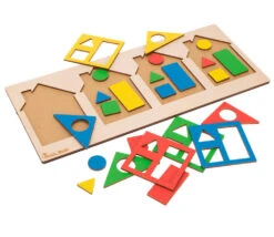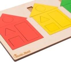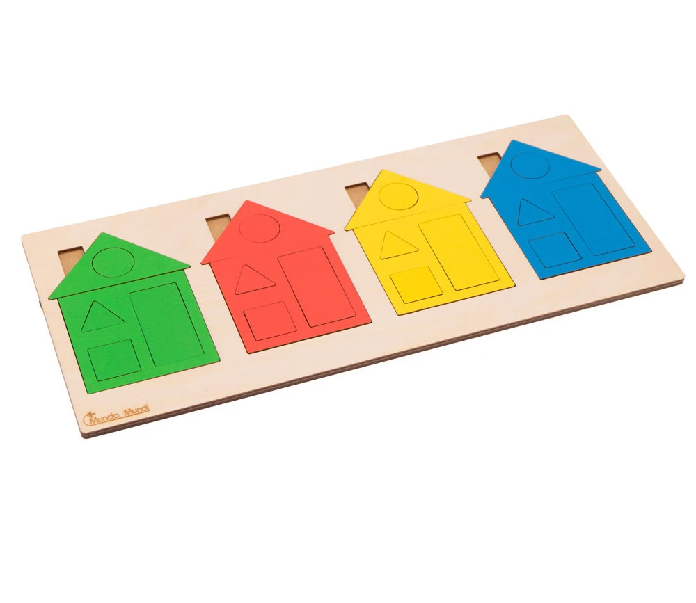 Jeu éducatif développé selon les principes de la méthode Montessori pour découvrir les formes et les couleurs.