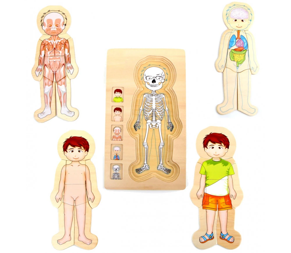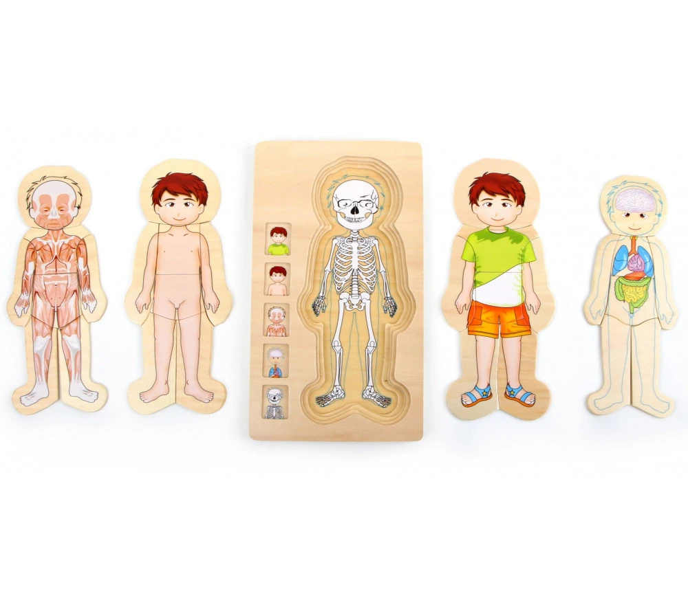Puzzle en 4 étapes pour découvrir et mieux comprendre le corps humain pour les enfants.