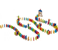 Boite de 247 dominos aux belles couleurs arc en ciel pour faire un parcours ou à utiliser comme support de travail en classe.