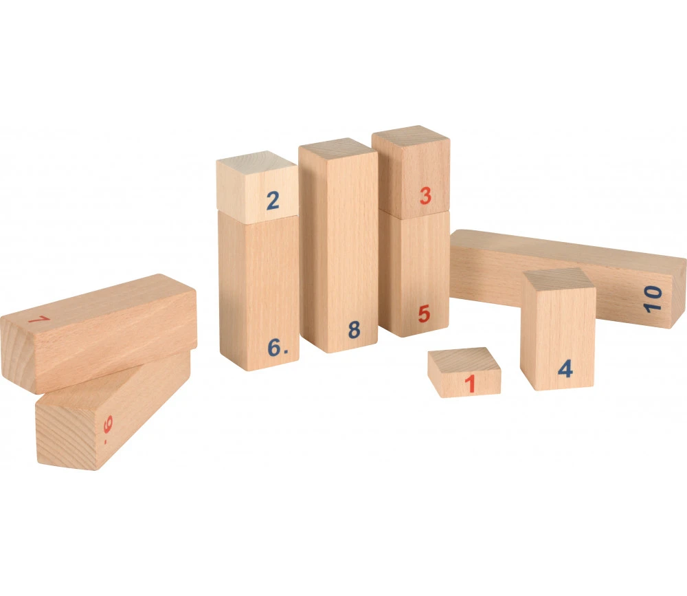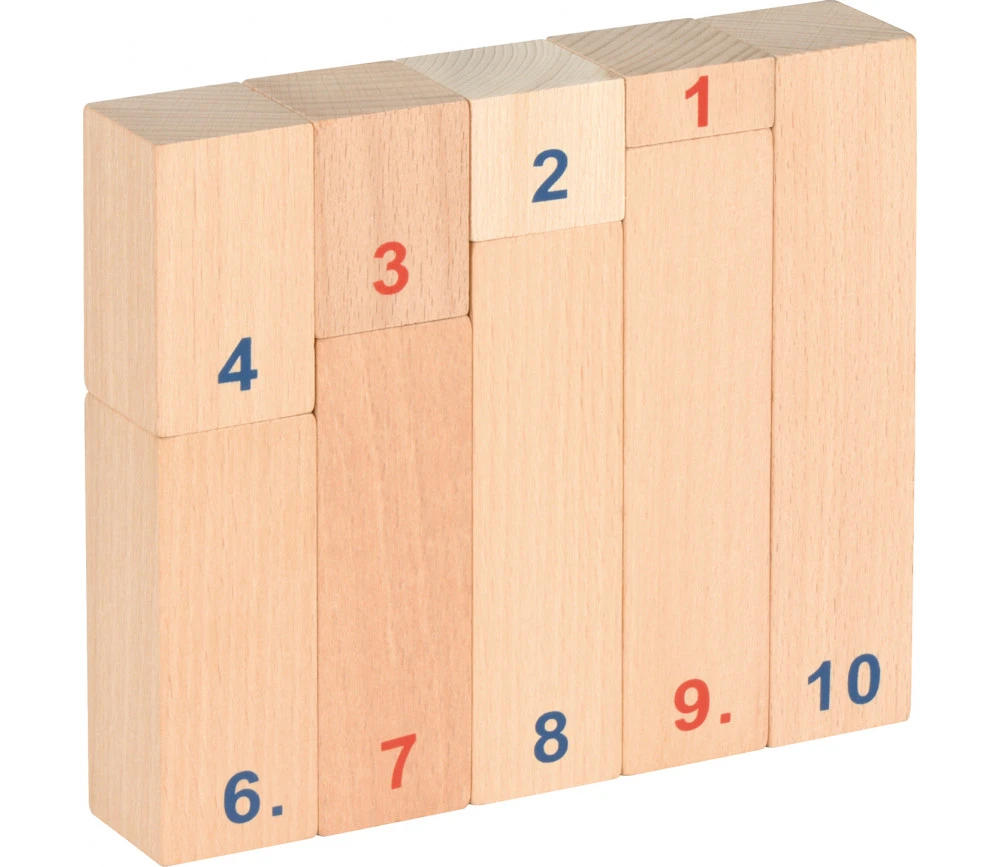 Jeu mathématiques bâton de calcul comprenant 10 pièces rectangulaires en bois naturel représentant les chiffres de 1 à 10.